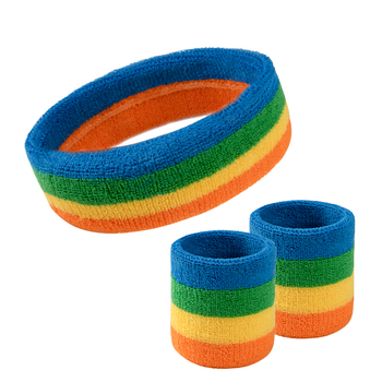พร้อมส่งสี่สีหนึ่งแถบคาดศีรษะ + สายรัดข้อมือสองเส้นชุดสายรัดข้อมือสีฟ้าเขียวเหลืองส้มรวม3ชิ้น